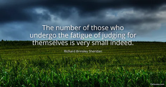 Sheridan, Richard Brinsley. (2026, January 15). The number of those who undergo the fatigue of judging for themselves is very small indeed. FixQuotes. https://fixquotes.com/quotes/the-number-of-those-who-undergo-the-fatigue-of-153091/