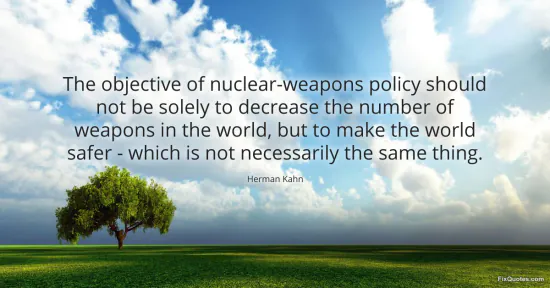 Kahn, Herman. (2026, January 16). The objective of nuclear-weapons policy should not be solely to decrease the number of weapons in the world, but to make the world safer - which is not necessarily the same thing. FixQuotes. https://fixquotes.com/quotes/the-objective-of-nuclear-weapons-policy-should-112038/
