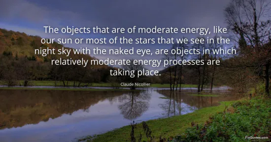 Nicollier, Claude. "The objects that are of moderate energy, like our sun or most of the stars that we see in the night sky with the naked eye, are objects in which relatively moderate energy processes are taking place." FixQuotes. January 18, 2026. https://fixquotes.com/quotes/the-objects-that-are-of-moderate-energy-like-our-20645/.