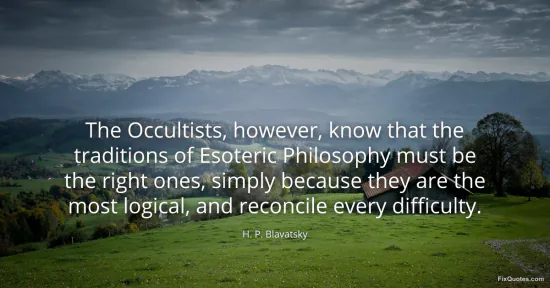 "The Occultists, however, know that the traditions of Esoteric Philosophy must be the right ones, simply because they are the most logical, and reconcile every difficulty." FixQuotes, 17 Jan. 2026, https://fixquotes.com/quotes/the-occultists-however-know-that-the-traditions-54332/. Accessed 13 Feb. 2026.