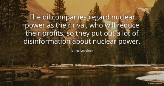 Lovelock, James. "The oil companies regard nuclear power as their rival, who will reduce their profits, so they put out a lot of disinformation about nuclear power." FixQuotes. January 18, 2026. https://fixquotes.com/quotes/the-oil-companies-regard-nuclear-power-as-their-18049/.