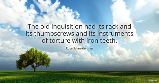 Schneiderman, Rose. "The old Inquisition had its rack and its thumbscrews and its instruments of torture with iron teeth." FixQuotes. January 17, 2026. https://fixquotes.com/quotes/the-old-inquisition-had-its-rack-and-its-71176/.