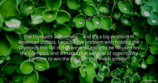 Estrich, Susan. (2026, January 16). The Olympics are coming... and it's a big problem in American politics, because the problem with holding the Olympics this fall is that we're all going to be focused on the Olympics, and it makes that window of opportunity for Gore to win the election that much smaller. FixQuotes. https://fixquotes.com/quotes/the-olympics-are-coming-and-its-a-big-problem-in-97973/