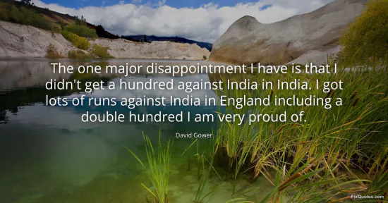 Gower, David. "The one major disappointment I have is that I didn't get a hundred against India in India. I got lots of runs against India in England including a double hundred I am very proud of." FixQuotes. Accessed February 2, 2026. https://fixquotes.com/quotes/the-one-major-disappointment-i-have-is-that-i-131790/.