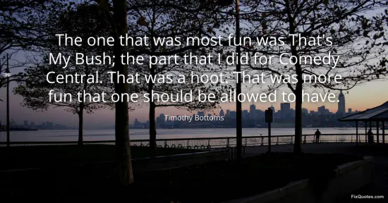 Bottoms, Timothy. (2026, January 16). The one that was most fun was That's My Bush; the part that I did for Comedy Central. That was a hoot. That was more fun that one should be allowed to have. FixQuotes. https://fixquotes.com/quotes/the-one-that-was-most-fun-was-thats-my-bush-the-99596/