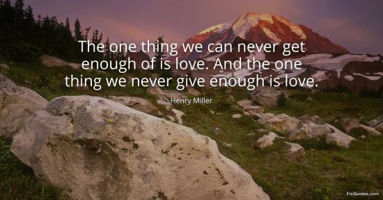 Miller, Henry. "The one thing we can never get enough of is love. And the one thing we never give enough is love." FixQuotes. January 18, 2026. https://fixquotes.com/quotes/the-one-thing-we-can-never-get-enough-of-is-love-14149/.