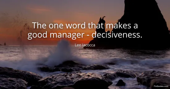 Iacocca, Lee. (2026, January 15). The one word that makes a good manager - decisiveness. FixQuotes. https://fixquotes.com/quotes/the-one-word-that-makes-a-good-manager-15824/