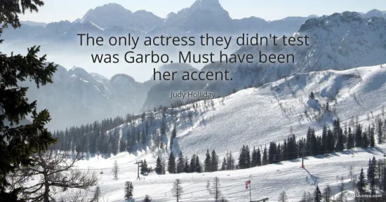 Holliday, Judy. "The only actress they didn't test was Garbo. Must have been her accent." FixQuotes. January 17, 2026. https://fixquotes.com/quotes/the-only-actress-they-didnt-test-was-garbo-must-60324/.
