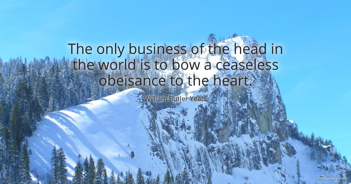Yeats, William Butler. (2026, January 18). The only business of the head in the world is to bow a ceaseless obeisance to the heart. FixQuotes. https://fixquotes.com/quotes/the-only-business-of-the-head-in-the-world-is-to-11061/