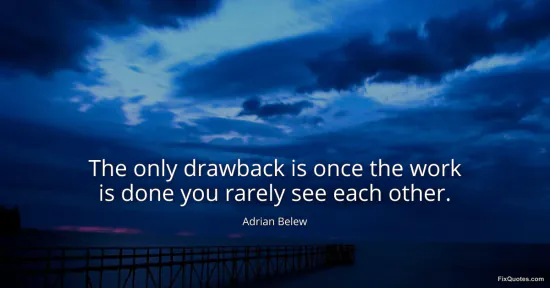 Belew, Adrian. (2026, January 17). The only drawback is once the work is done you rarely see each other. FixQuotes. https://fixquotes.com/quotes/the-only-drawback-is-once-the-work-is-done-you-40013/