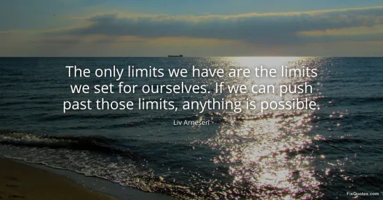 Arnesen, Liv. (2026, January 15). The only limits we have are the limits we set for ourselves. If we can push past those limits, anything is possible. FixQuotes. https://fixquotes.com/quotes/the-only-limits-we-have-are-the-limits-we-set-for-171736/