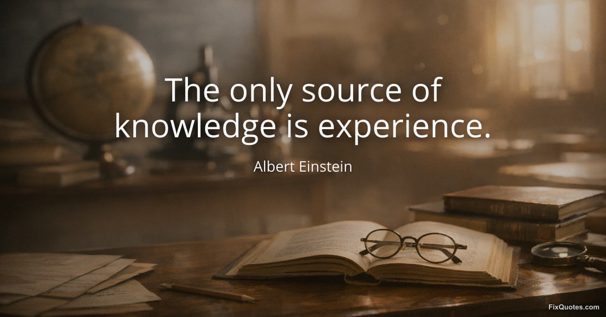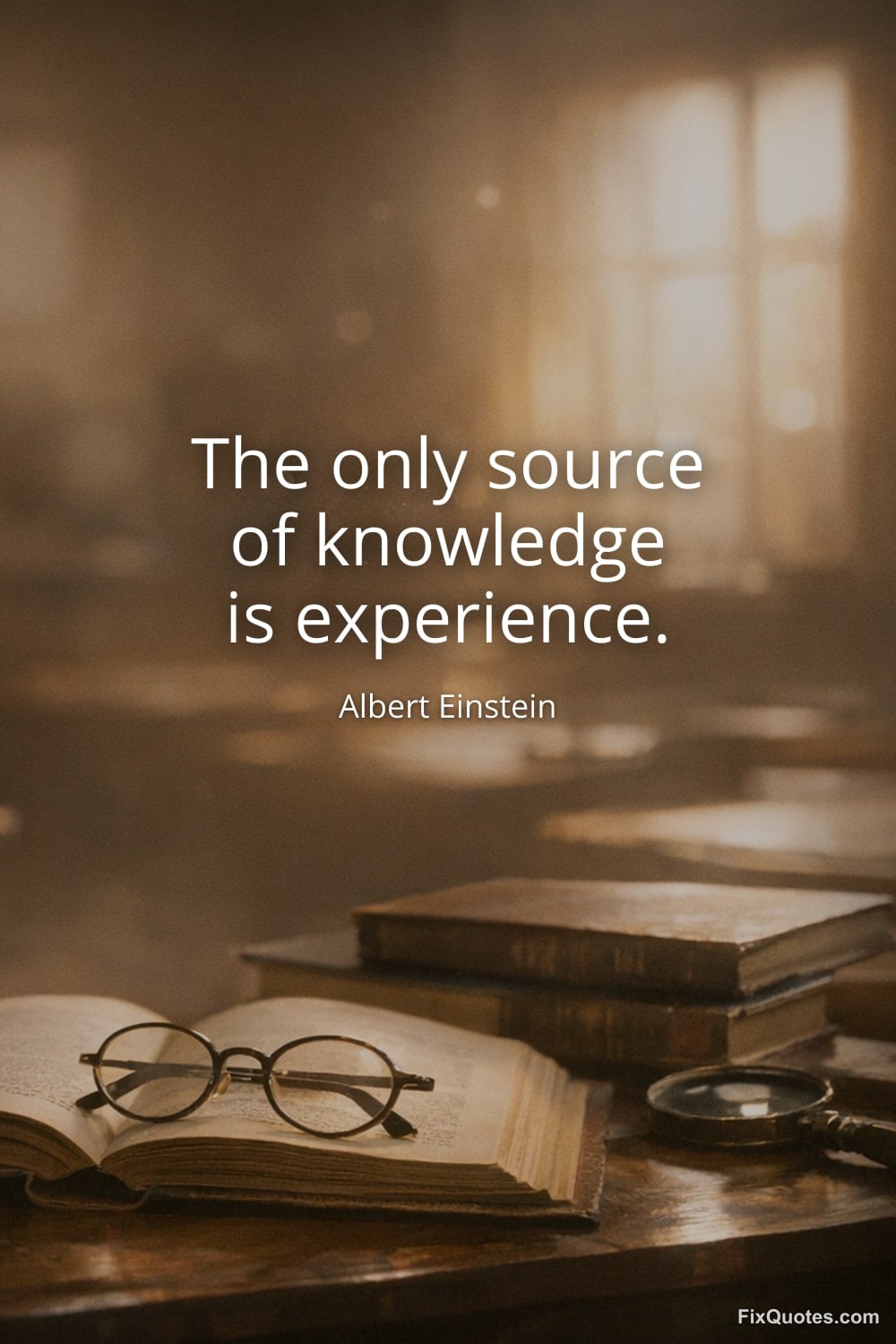 Einstein, Albert. (2026, February 7). The only source of knowledge is experience. FixQuotes. https://fixquotes.com/quotes/the-only-source-of-knowledge-is-experience-25331/