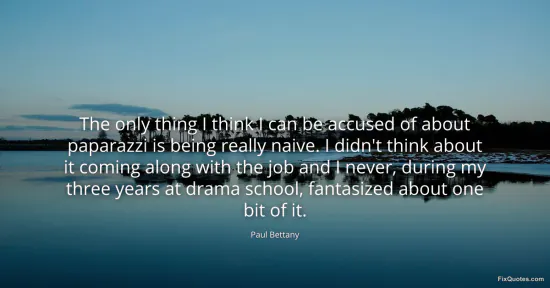 Bettany, Paul. "The only thing I think I can be accused of about paparazzi is being really naive. I didn't think about it coming along with the job and I never, during my three years at drama school, fantasized about one bit of it." FixQuotes. January 17, 2026. https://fixquotes.com/quotes/the-only-thing-i-think-i-can-be-accused-of-about-79283/.