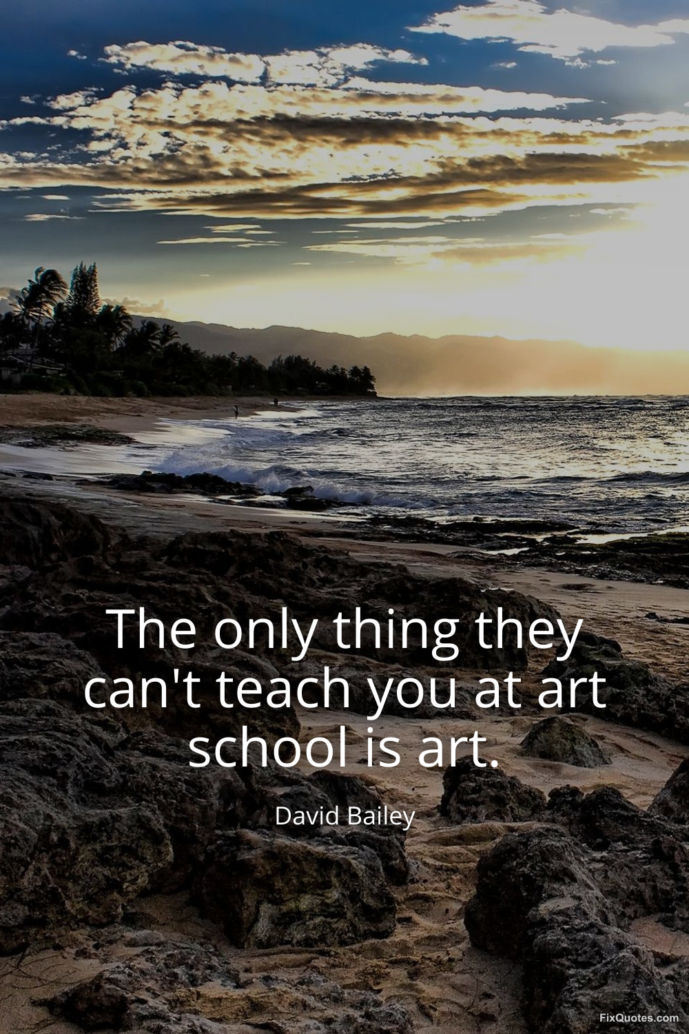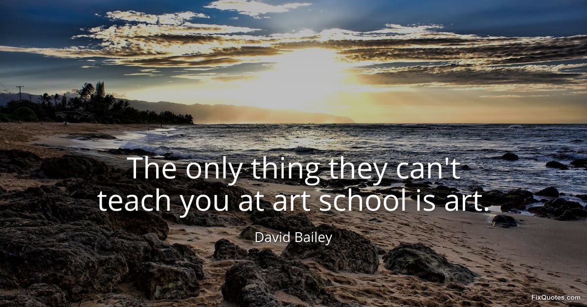 Bailey, David. (2026, March 23). The only thing they can't teach you at art school is art. FixQuotes. https://fixquotes.com/quotes/the-only-thing-they-cant-teach-you-at-art-school-186256/