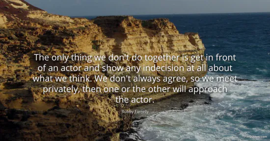 Farrelly, Bobby. "The only thing we don't do together is get in front of an actor and show any indecision at all about what we think. We don't always agree, so we meet privately, then one or the other will approach the actor." FixQuotes. January 16, 2026. https://fixquotes.com/quotes/the-only-thing-we-dont-do-together-is-get-in-131935/.