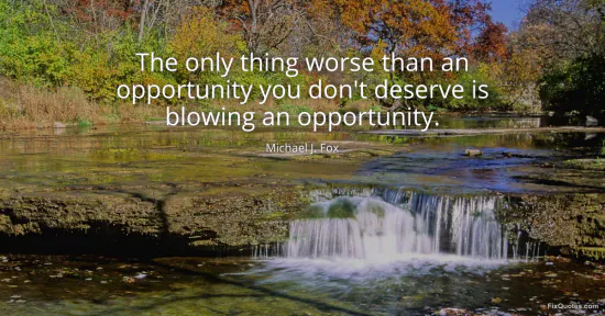 Fox, Michael J. "The only thing worse than an opportunity you don't deserve is blowing an opportunity." FixQuotes. January 16, 2026. https://fixquotes.com/quotes/the-only-thing-worse-than-an-opportunity-you-dont-82779/.
