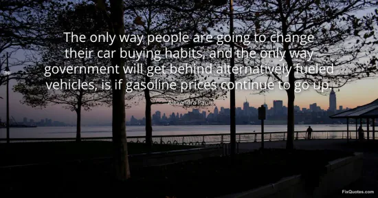 Paul, Alexandra. "The only way people are going to change their car buying habits, and the only way government will get behind alternatively fueled vehicles, is if gasoline prices continue to go up." FixQuotes. January 15, 2026. https://fixquotes.com/quotes/the-only-way-people-are-going-to-change-their-car-157673/.