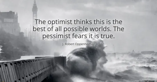 Oppenheimer, J. Robert. (n.d.). The optimist thinks this is the best of all possible worlds. The pessimist fears it is true. FixQuotes. https://fixquotes.com/quotes/the-optimist-thinks-this-is-the-best-of-all-25414/