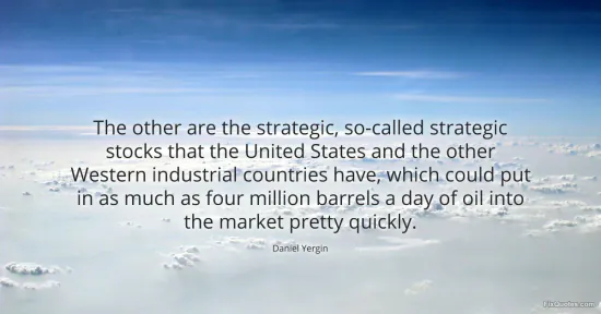 Yergin, Daniel. (2026, January 17). The other are the strategic, so-called strategic stocks that the United States and the other Western industrial countries have, which could put in as much as four million barrels a day of oil into the market pretty quickly. FixQuotes. https://fixquotes.com/quotes/the-other-are-the-strategic-so-called-strategic-52550/