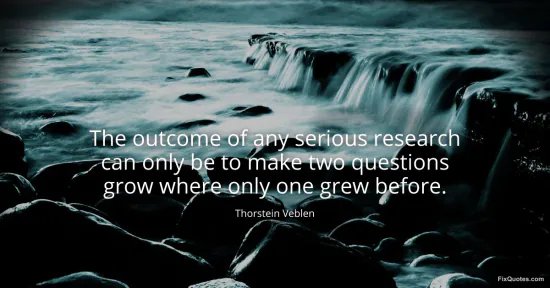 Veblen, Thorstein. (2026, January 18). The outcome of any serious research can only be to make two questions grow where only one grew before. FixQuotes. https://fixquotes.com/quotes/the-outcome-of-any-serious-research-can-only-be-16360/