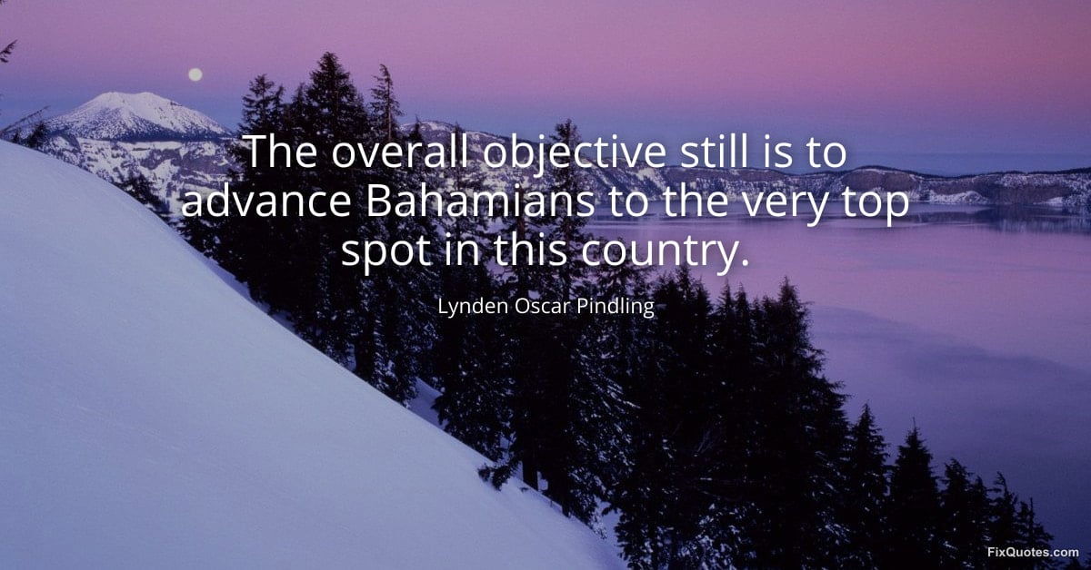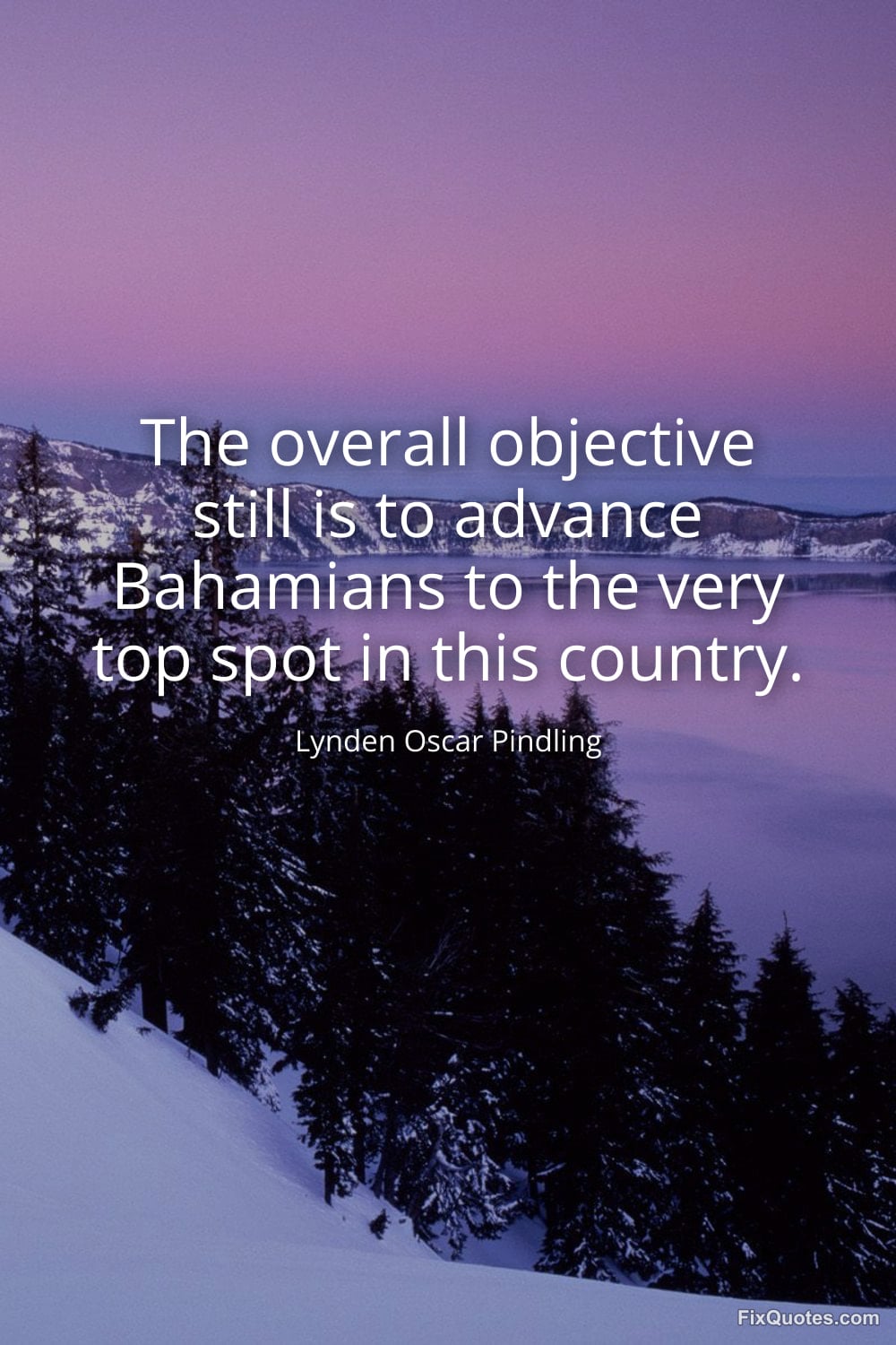 Pindling, Lynden Oscar. (2026, February 16). The overall objective still is to advance Bahamians to the very top spot in this country. FixQuotes. https://fixquotes.com/quotes/the-overall-objective-still-is-to-advance-185527/
