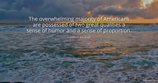 Roosevelt, Franklin D. "The overwhelming majority of Americans are possessed of two great qualities a sense of humor and a sense of proportion." FixQuotes. January 17, 2026. https://fixquotes.com/quotes/the-overwhelming-majority-of-americans-are-35019/.