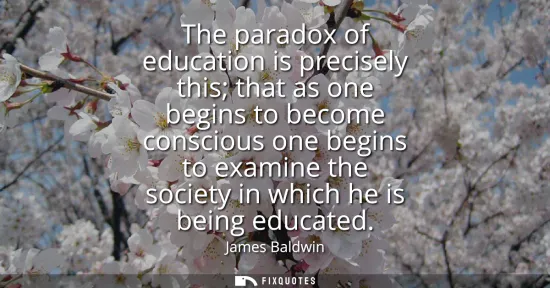 "The paradox of education is precisely this; that as one begins to become conscious one begins to examine the society in which he is being educated"