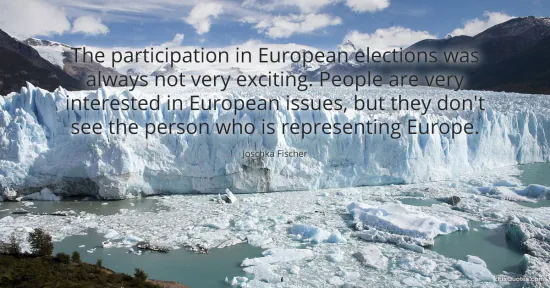 Fischer, Joschka. "The participation in European elections was always not very exciting. People are very interested in European issues, but they don't see the person who is representing Europe." FixQuotes. January 15, 2026. https://fixquotes.com/quotes/the-participation-in-european-elections-was-119651/.