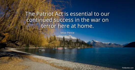 Pence, Mike. (2026, January 17). The Patriot Act is essential to our continued success in the war on terror here at home. FixQuotes. https://fixquotes.com/quotes/the-patriot-act-is-essential-to-our-continued-68276/