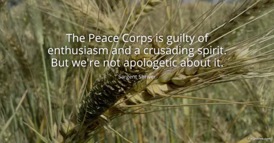 Shriver, Sargent. (2026, January 15). The Peace Corps is guilty of enthusiasm and a crusading spirit. But we're not apologetic about it. FixQuotes. https://fixquotes.com/quotes/the-peace-corps-is-guilty-of-enthusiasm-and-a-150009/