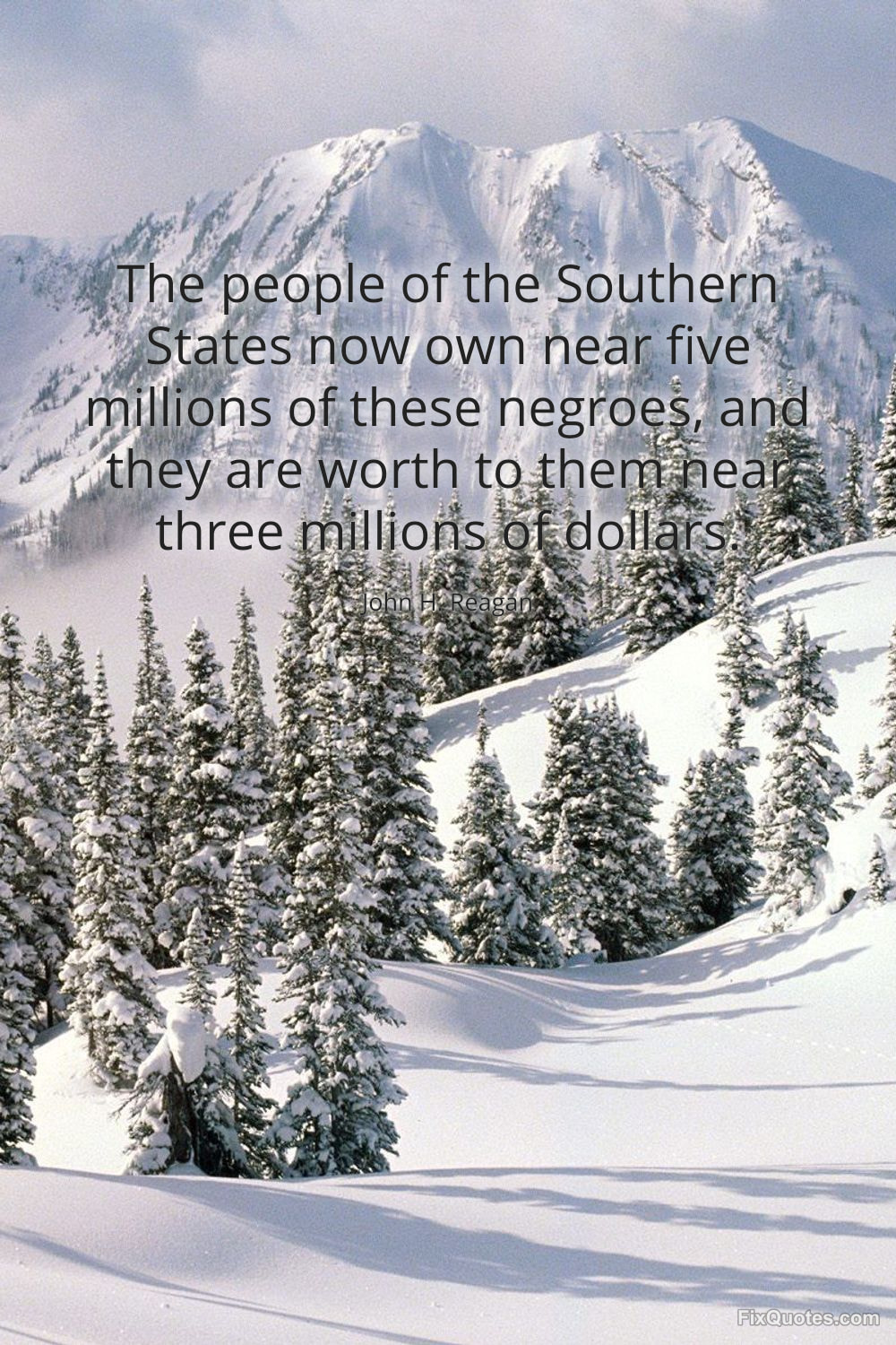 Reagan, John H. (2026, January 16). The people of the Southern States now own near five millions of these negroes, and they are worth to them near three millions of dollars. FixQuotes. https://fixquotes.com/quotes/the-people-of-the-southern-states-now-own-near-133378/