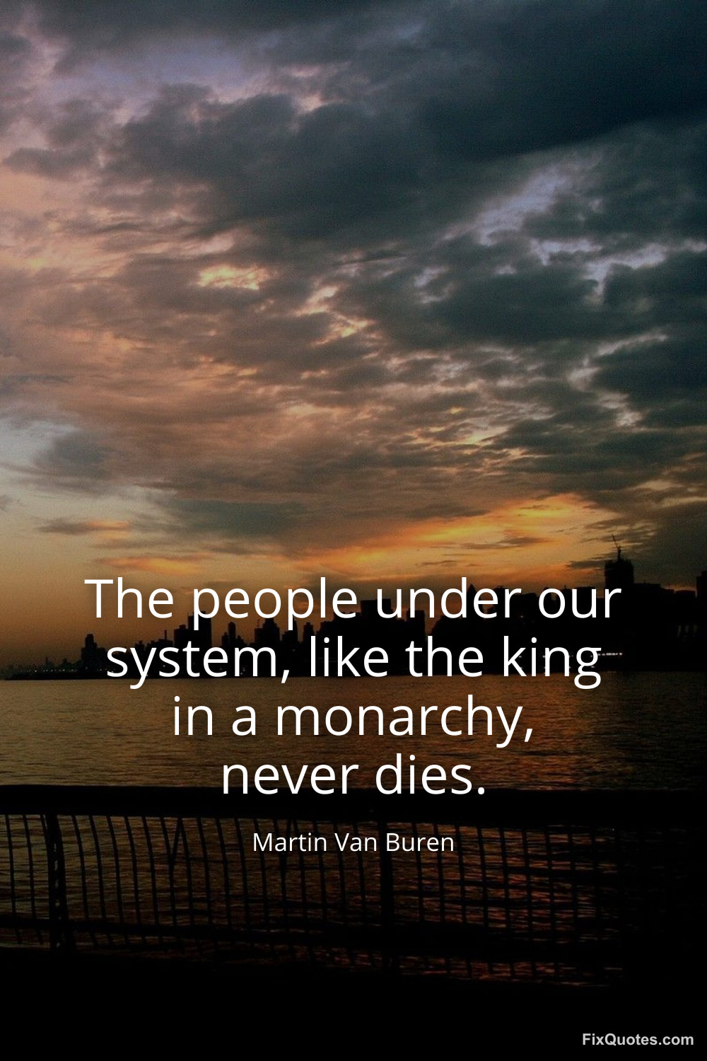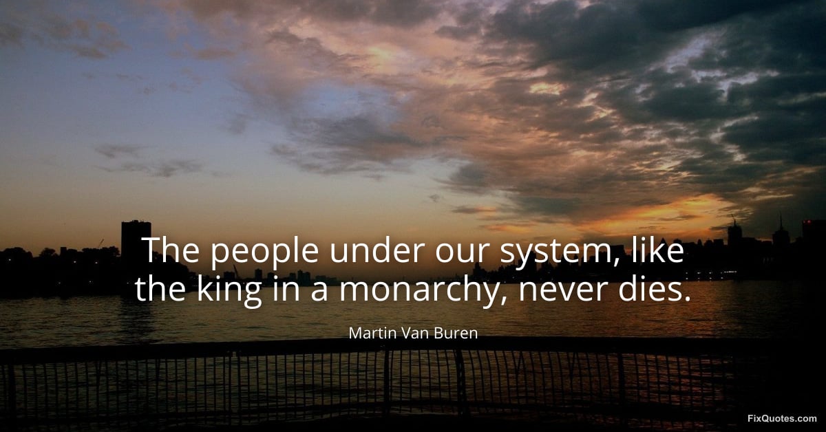 Buren, Martin Van. (2026, January 15). The people under our system, like the king in a monarchy, never dies. FixQuotes. https://fixquotes.com/quotes/the-people-under-our-system-like-the-king-in-a-156768/