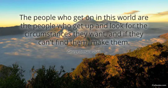 Shaw, George Bernard. "The people who get on in this world are the people who get up and look for the circumstances they want, and if they can't find them, make them." FixQuotes. February 16, 2026. https://fixquotes.com/quotes/the-people-who-get-on-in-this-world-are-the-29179/.