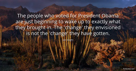 Voight, Jon. (2026, January 16). The people who voted for President Obama are just beginning to wake up to exactly what they brought in. The 'change' they envisioned is not the 'change' they have gotten. FixQuotes. https://fixquotes.com/quotes/the-people-who-voted-for-president-obama-are-just-133583/