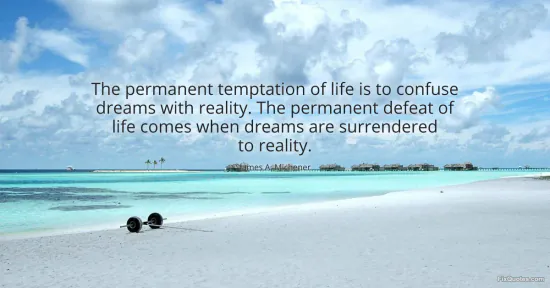 Michener, James A. (2026, January 17). The permanent temptation of life is to confuse dreams with reality. The permanent defeat of life comes when dreams are surrendered to reality. FixQuotes. https://fixquotes.com/quotes/the-permanent-temptation-of-life-is-to-confuse-51403/