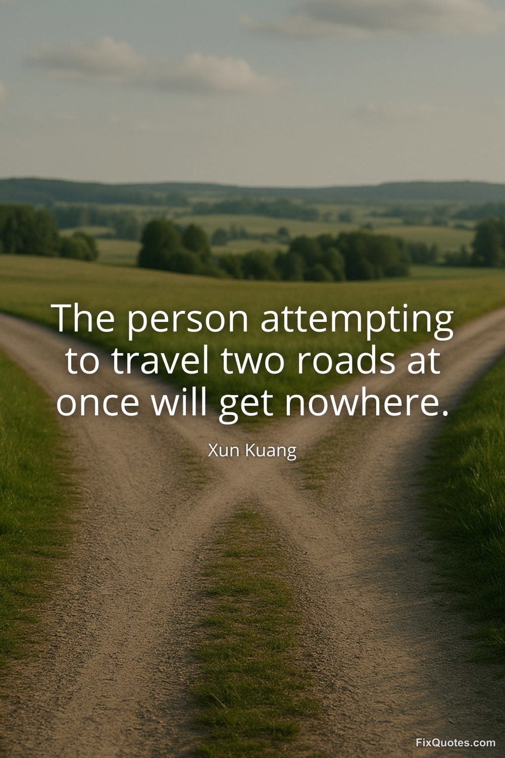 Kuang, Xun. (2026, January 13). The person attempting to travel two roads at once will get nowhere. FixQuotes. https://fixquotes.com/quotes/the-person-attempting-to-travel-two-roads-at-once-16570/