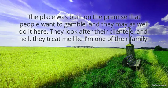 Brimley, Wilford. "The place was built on the premise that people want to gamble, and they may as well do it here. They look after their clientele, and, hell, they treat me like I'm one of their family." FixQuotes. January 15, 2026. https://fixquotes.com/quotes/the-place-was-built-on-the-premise-that-people-169149/.