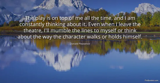 Pleasence, Donald. "The play is on top of me all the time, and I am constantly thinking about it. Even when I leave the theatre, I'll mumble the lines to myself or think about the way the character walks or holds himself." FixQuotes. January 17, 2026. https://fixquotes.com/quotes/the-play-is-on-top-of-me-all-the-time-and-i-am-58130/.