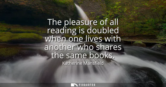| Source | Katherine Mansfield — quoted as “The pleasure of all reading is doubled when one lives with another who shares the same books.” Cited on the Wikiquote page for Katherine Mansfield (primary source not specified on that page). |