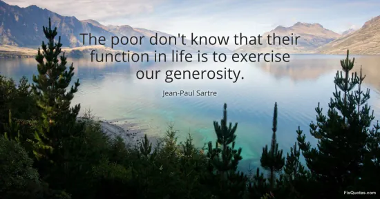 Sartre, Jean-Paul. "The poor don't know that their function in life is to exercise our generosity." FixQuotes. January 17, 2026. https://fixquotes.com/quotes/the-poor-dont-know-that-their-function-in-life-is-35817/.
