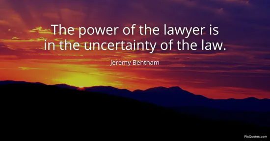 Bentham, Jeremy. (2026, February 8). The power of the lawyer is in the uncertainty of the law. FixQuotes. https://fixquotes.com/quotes/the-power-of-the-lawyer-is-in-the-uncertainty-of-15122/