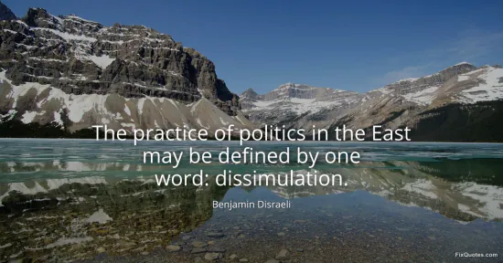 Disraeli, Benjamin. "The practice of politics in the East may be defined by one word: dissimulation." FixQuotes. January 18, 2026. https://fixquotes.com/quotes/the-practice-of-politics-in-the-east-may-be-4681/.