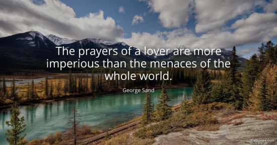 Sand, George. (2026, January 16). The prayers of a lover are more imperious than the menaces of the whole world. FixQuotes. https://fixquotes.com/quotes/the-prayers-of-a-lover-are-more-imperious-than-91049/