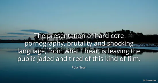 Negri, Pola. "The presentation of hard core pornography, brutality and shocking language, from what I hear, is leaving the public jaded and tired of this kind of film." FixQuotes. January 15, 2026. https://fixquotes.com/quotes/the-presentation-of-hard-core-pornography-153155/.
