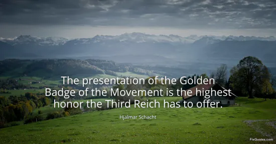 Schacht, Hjalmar. "The presentation of the Golden Badge of the Movement is the highest honor the Third Reich has to offer." FixQuotes. January 17, 2026. https://fixquotes.com/quotes/the-presentation-of-the-golden-badge-of-the-78101/.