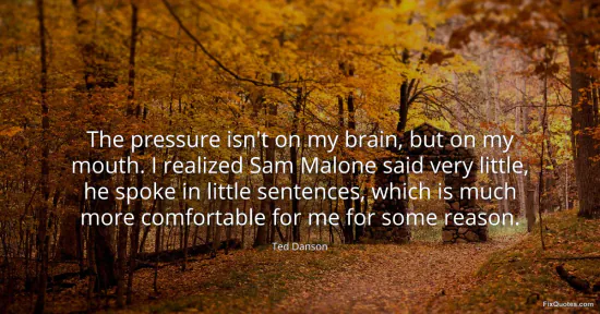 Danson, Ted. (2026, February 16). The pressure isn't on my brain, but on my mouth. I realized Sam Malone said very little, he spoke in little sentences, which is much more comfortable for me for some reason. FixQuotes. https://fixquotes.com/quotes/the-pressure-isnt-on-my-brain-but-on-my-mouth-i-121737/