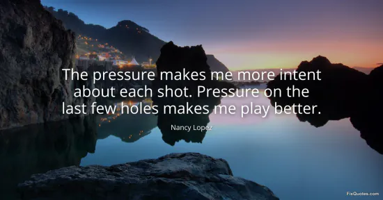 Lopez flips the usual sports-movie script: pressure isn’t a monster to be conquered, it’s a tool she knows how to use. The line is built on a small but telling shift from emotion to mechanics. She doesn’t say pressure makes her “tougher” or “braver.” It makes her “more intent about each shot” - narrower focus, fewer wasted thoughts, a clean channel between decision and execution. That word intent matters because it implies choice. Pressure is not something happening to her; it’s something she converts.