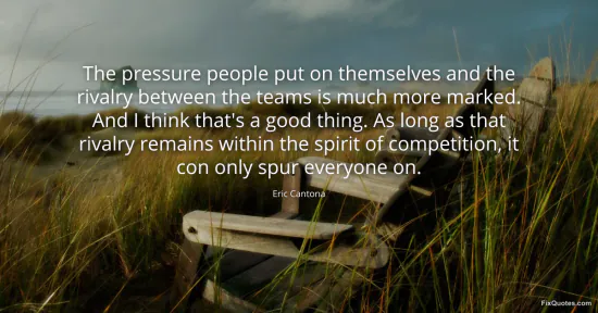 Cantona, Eric. (2026, January 16). The pressure people put on themselves and the rivalry between the teams is much more marked. And I think that's a good thing. As long as that rivalry remains within the spirit of competition, it con only spur everyone on. FixQuotes. https://fixquotes.com/quotes/the-pressure-people-put-on-themselves-and-the-132450/