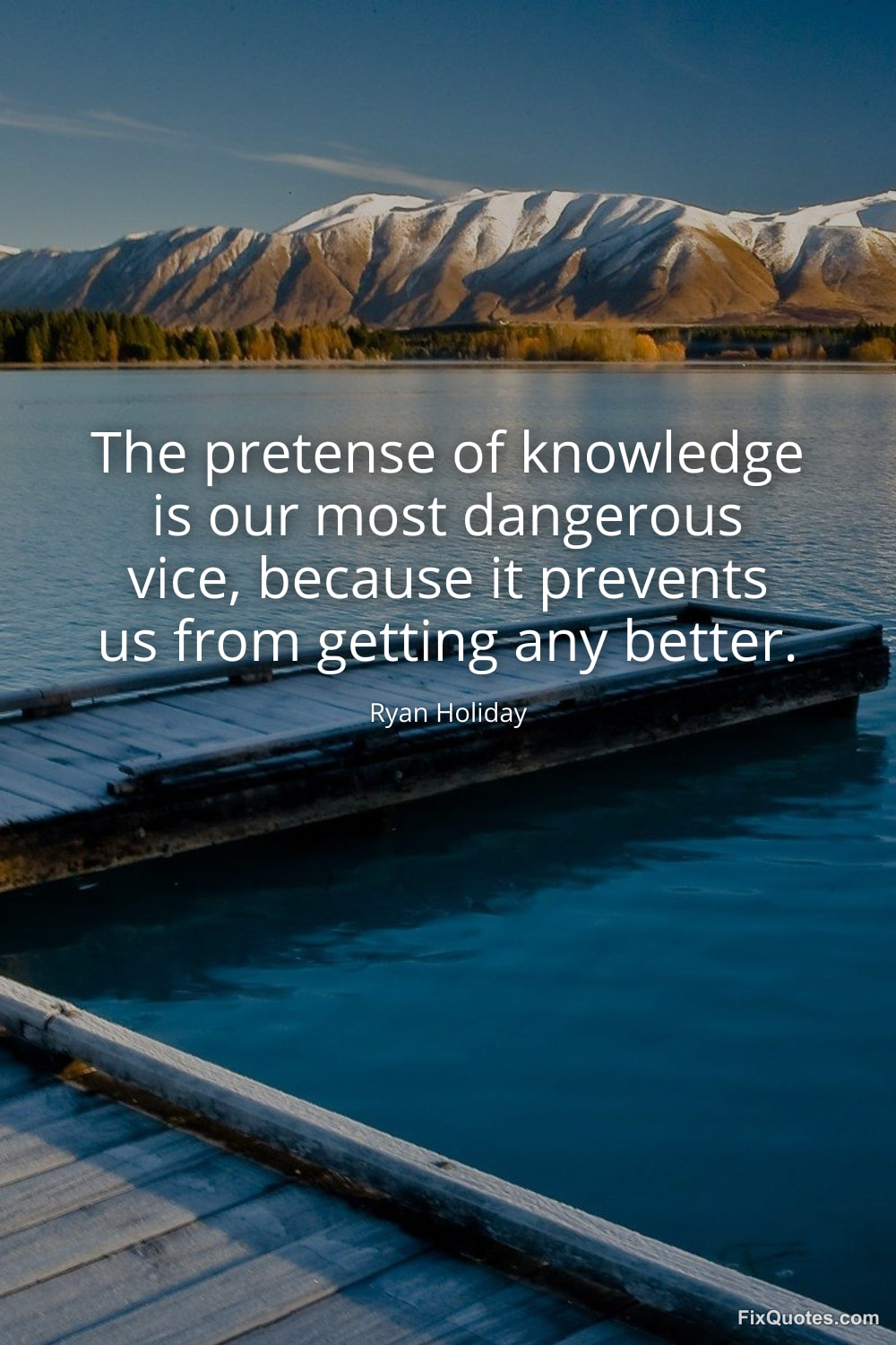 Holiday, Ryan. "The pretense of knowledge is our most dangerous vice, because it prevents us from getting any better." FixQuotes. January 25, 2026. https://fixquotes.com/quotes/the-pretense-of-knowledge-is-our-most-dangerous-184135/.