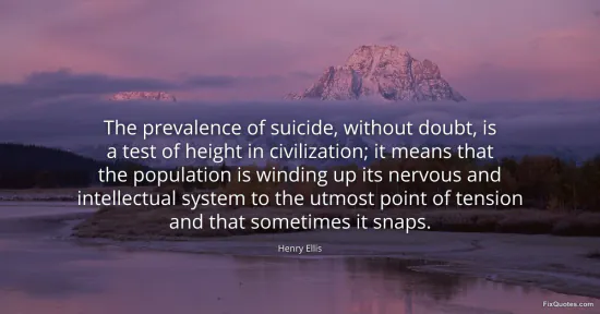 Ellis, Henry. "The prevalence of suicide, without doubt, is a test of height in civilization; it means that the population is winding up its nervous and intellectual system to the utmost point of tension and that sometimes it snaps." FixQuotes. January 18, 2026. https://fixquotes.com/quotes/the-prevalence-of-suicide-without-doubt-is-a-test-17253/.